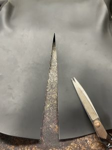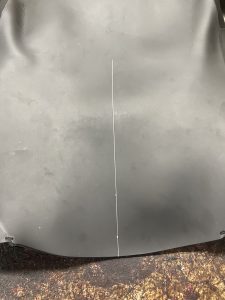 しかし、一例のタッパーは両サイドのカッティング(前身と後身の繋がり部分)が極端にカーブしている特殊なカッティングだったため、そこは利用しづらく、大胆にど真ん中にハサミを入れそこにマチを入れる修理方法に決めていただきました。